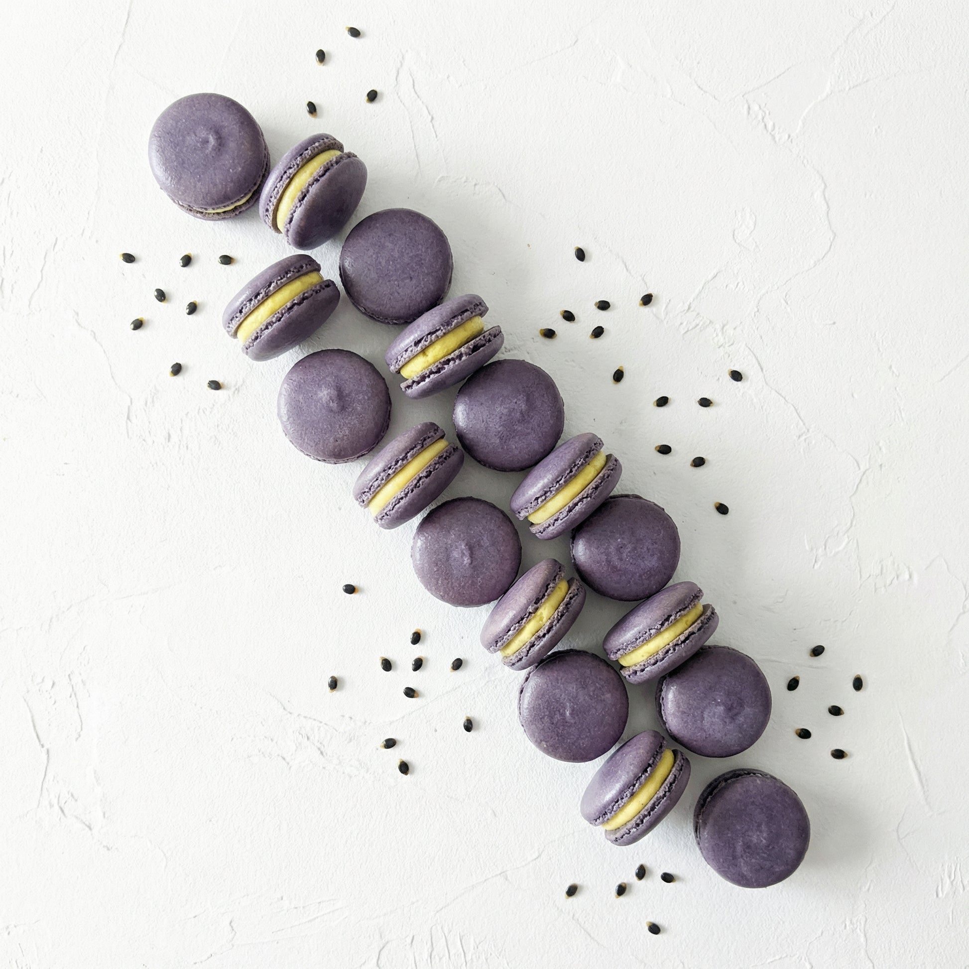 มาการองรสเพอร์เพิลแพชชั่นฟรุ๊ตระดับพรีเมียม ทำด้วยเทคนิคการทำมาการองแบบฝรั่งเศสแท้ๆ โดยใช้ผงอัลมอนด์คุณภาพดีนำเข้า และเปลือกมาการองที่ทำจากไข่เพื่อให้ได้ผิวกรอบนอกนุ่มในอันเป็นเอกลักษณ์ ไส้เสาวรสแท้และครีมชีสให้รสชาติเปรี้ยวอมหวานสดชื่นแบบเขตร้อน เก็บแช่แข็งได้นานถึง 1 ปี และละลายที่อุณหภูมิห้องเมื่อต้องการรับประทาน เพื่อความสดใหม่ คุณภาพระดับงานฝีมือ พร้อมรับประทานได้ทันที โดยไม่ต้องเสียเวลาเตรียม เหมาะสำหรับร้านอาหาร ร้านกาแฟ บริการจัดเลี้ยง และงานแต่งงาน!